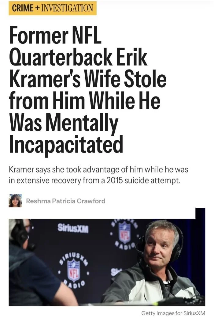 According to Johnathan Walton, a public speaker and host of The Quarterback and the Con Artist podcast, which explores Kramer’s story, the alleged financial abuse occurred after Kramer survived a 2015 suicide attempt that resulted in significant brain injury.